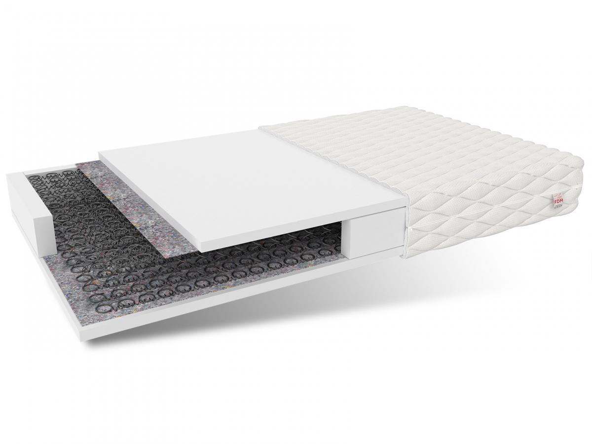PESARO jest materacem bonellowym. Jego sprężyny zostały wykonane z wysokiej jakości drutu o podwyższonej żywotności. Materac zapewnia również prawidłową cyrkulację powietrza. Podczas każdego ruchu powietrze zostaje „wpompowane” do środka materaca. Sprężyny charakteryzują się tym, że im mocniejszy nacisk, tym większy opór stawia ich powierzchnia. Jeśli zaś nacisk jest lekki, sprężyna bonellowa stawia stosunkowo mały opór. Wkład bonellowy otoczony został pianką poliuretanową T25, odporną na odkształcenia, o podwyższonej wytrzymałości.