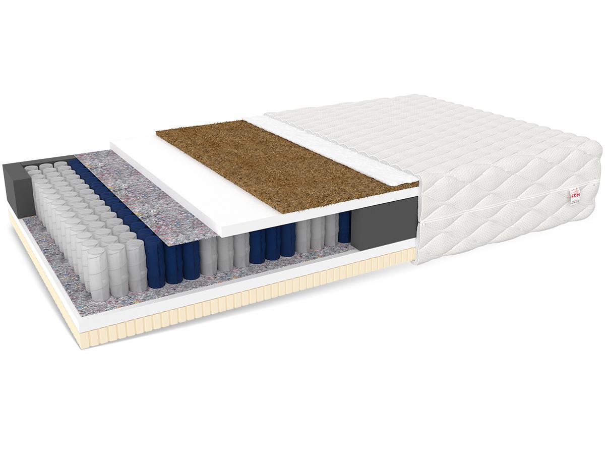 Bazę materaca ARDEA stanowi formatka pocketowa (kieszonkowa). Sprężyny pocketowe zostały wykonane w technologii NanoHARD, podwójnie hartowany drut znacznie przedłuża ich żywotność. Dzięki zastosowaniu 7-stref o zróżnicowanej twardości materac zapewnia ergonomiczną pozycję ciała podczas wypoczynku. Niezależna praca sprężyn, eliminuje efekt wyginania się dużej powierzchni materaca przy nacisku na jego małą powierzchnię. Dzięki czemu wszelkiego rodzaju obracanie, czy wiercenie nie będzie odczuwalne dla drugiej osoby. Wkład kieszeniowy otacza pianka poliuretanowa T25, odporna na odkształcenia. Materac posiada z jednej strony wkład kokosowy, który nadaje większą twardość oraz tworzy antyalergiczną powierzchnię. Druga strona materaca pokryta jest lateksem o wysokiej sprężystości, który doskonale przepuszcza powietrze.