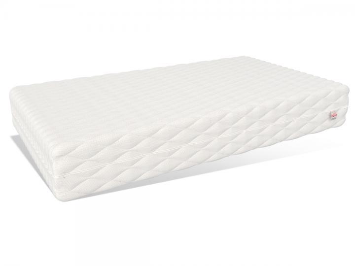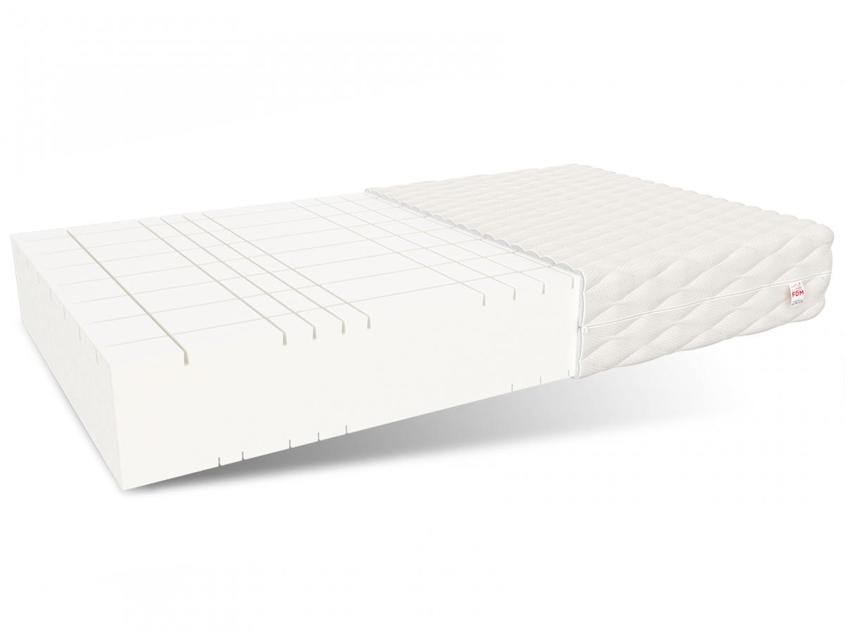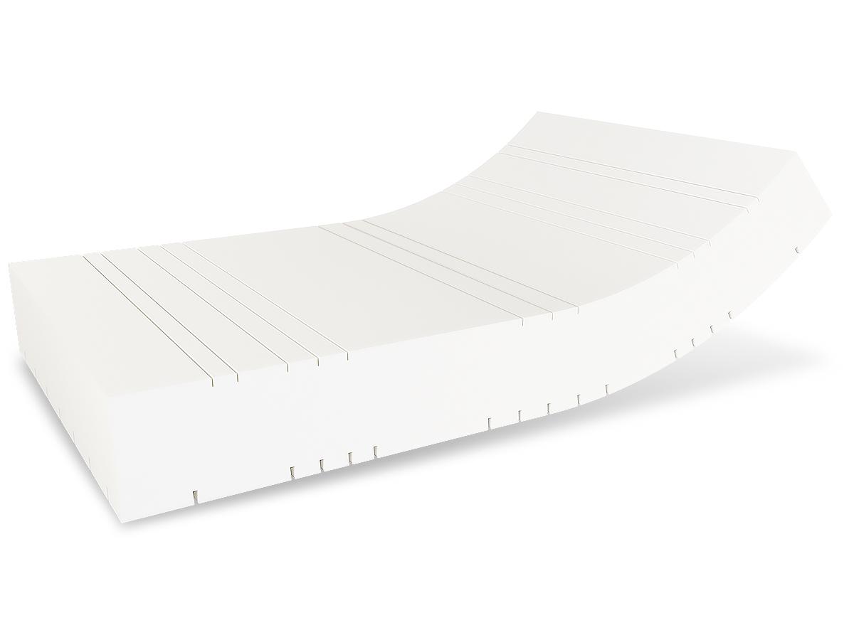 GOYA MAX PLUS to dwustronny materac wysokiej jakości. Dzięki zastosowaniu szeregu wzdłużnych oraz poprzecznych nacięć materac podzielono na 7-stref. Uzyskano dzięki temu znaczne zwiększenie plastyczności, zapewniając doskonałe podparcie kręgosłupa. Pianka posiada niejednolitą strukturę komórkową, która uzyskuje lepsze parametry podtrzymywania ciała, komfortu oraz sprężystości. Zapewnia idealne dopasowanie materaca do kształtu ciała, pozostając przy tym niezwykle lekką. Materiał ten wyróżnia się niezwykłą trwałością i odpornością na odkształcenia. Porowata struktura, zapewnia doskonałą cyrkulację powietrza, co uniemożliwia rozwój grzybów i pleśni. Płaszczyzna, cięta konturowo w formie kraty, wyróżnia się właściwościami ortopedycznymi.