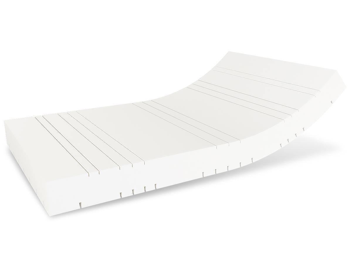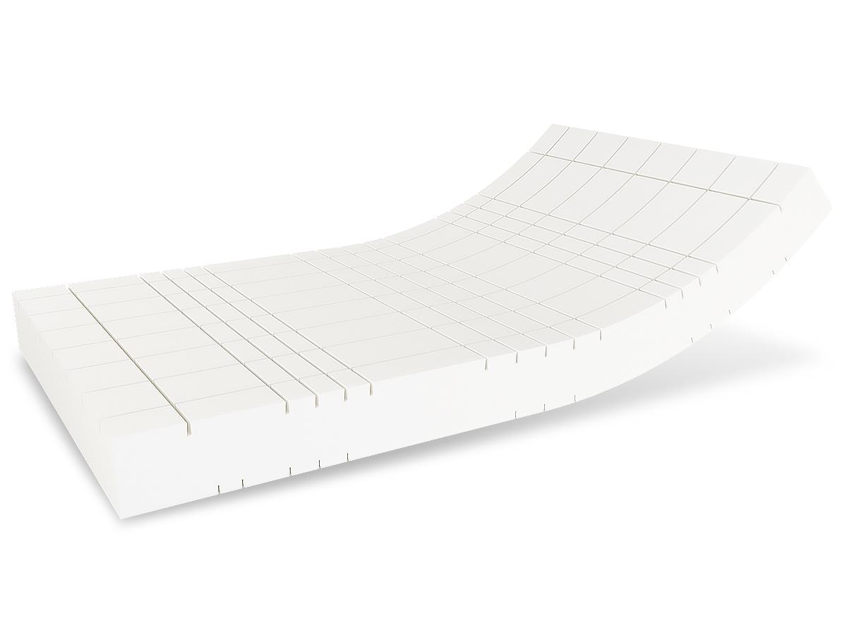 GOYA to dwustronny materac wysokiej jakości. Dzięki zastosowaniu szeregu wzdłużnych oraz poprzecznych nacięć materac podzielono na 7-stref. Uzyskano dzięki temu znaczne zwiększenie plastyczności, zapewniając doskonałe podparcie kręgosłupa. Pianka posiada niejednolitą strukturę komórkową, która uzyskuje lepsze parametry podtrzymywania ciała, komfortu oraz sprężystości. Zapewnia idealne dopasowanie materaca do kształtu ciała, pozostając przy tym niezwykle lekką. Materiał ten wyróżnia się niezwykłą trwałością i odpornością na odkształcenia. Porowata struktura, zapewnia doskonałą cyrkulację powietrza, co uniemożliwia rozwój grzybów i pleśni. Płaszczyzna, cięta konturowo w formie kraty, wyróżnia się właściwościami ortopedycznymi.