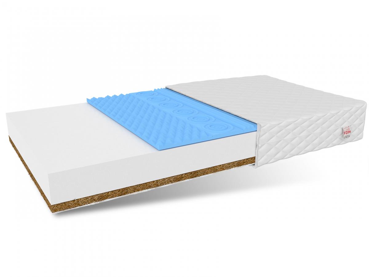Bazę modelu SORRENTO stanowi wysoko gatunkowa pianka poliuretanowa T25, o podwyższonej wytrzymałości. Z jednej strony dodano warstwę kokosu, która usztywnia materac oraz chroni go przed wnikaniem drobnoustrojów i roztoczy. Druga strona została wyposażona w profilowaną 7-strefową piankę HR. Materiał o zwiększonej sztywności i odporności, nadający właściwą sprężystość. Zastosowane surowce sprawiają, że materac posiada zwiększoną zdolność przepuszczalności powietrza.
